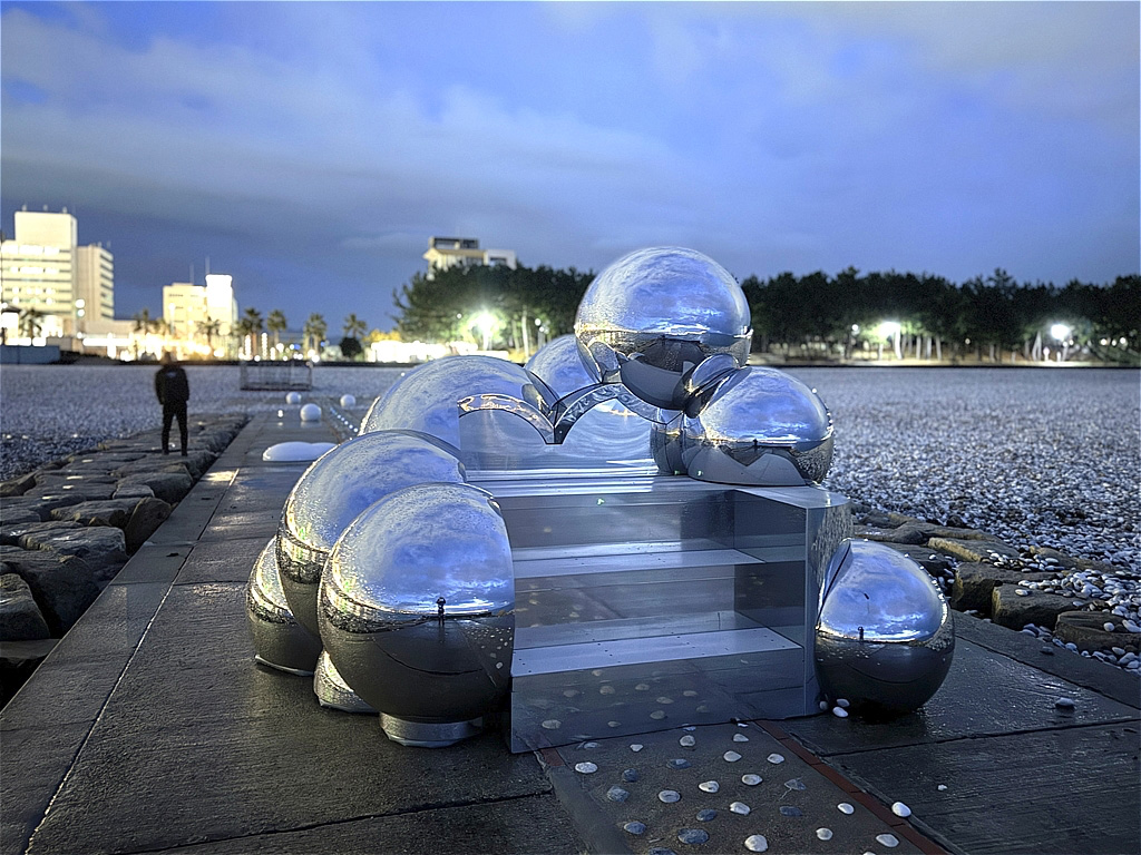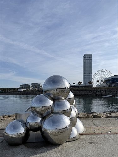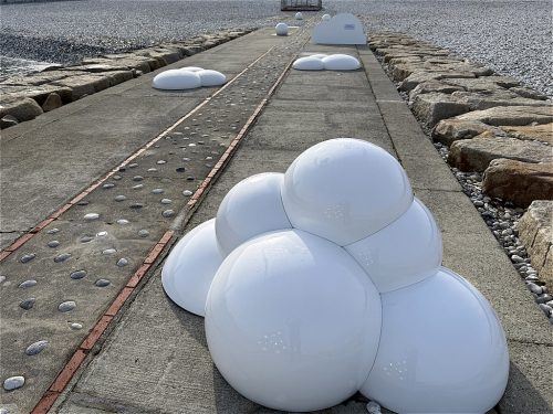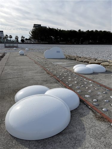 The design features a motif of clouds, combining spheres of various sizes in three dimensions and scattering them across a site of approximately 50m.
