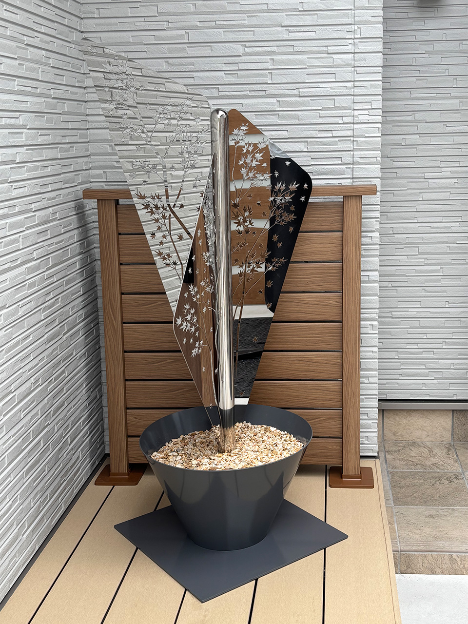 Maintaining garden trees requires daily care such as watering and trimming. The stainless steel tree sculpture was installed as a maintenance-free accent piece to create a vibrant focal point.